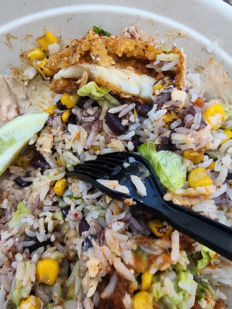 Visiting san diego from Oregon so there are no Rubios. Had the street corn bowl with fish. So good. Love the chipotle salsa. I'm going back for taco Tuesday.